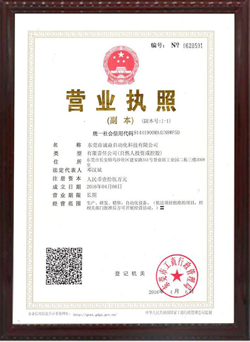 自動繞線扎線機(jī)生產(chǎn)廠家誠焱營業(yè)執(zhí)照附本
