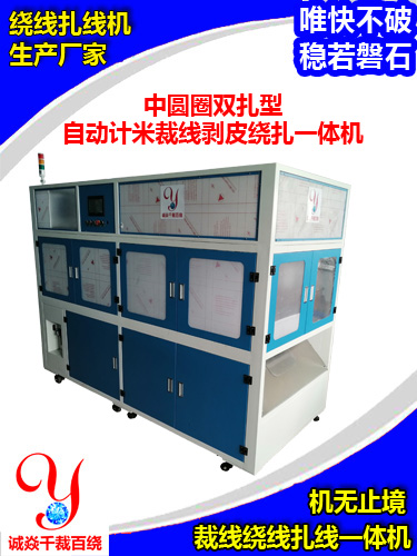 大圓圈雙扎型自動(dòng)計(jì)米裁剝繞扎一體機(jī),適用電線(xiàn)電纜,護(hù)套線(xiàn),電源線(xiàn),AC線(xiàn),繞線(xiàn)扎線(xiàn)機(jī)生產(chǎn)廠(chǎng)家,裁線(xiàn)剝皮繞扎一體機(jī)無(wú)止境,唯快不破,穩(wěn)若磐石,誠(chéng)焱千裁百繞不厭倦!...